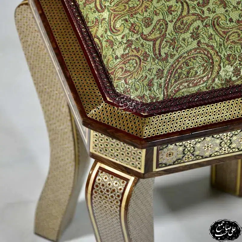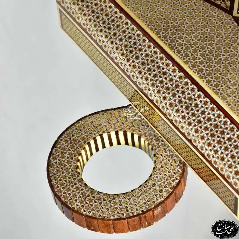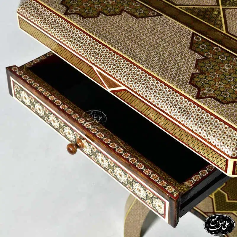 ساخته شده از چوب چنار و گردو درجه یک و خاتم شیش پر سیم برنجی اعلاء