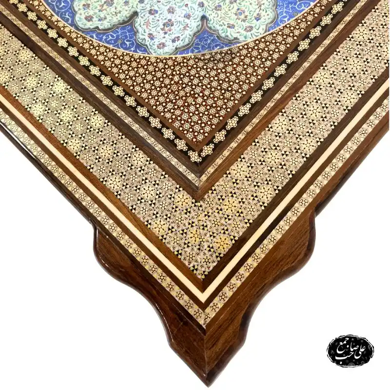 ترکیب دو هنر اصیل ایرانی: میناکاری و خاتمکاری در یک قاب.