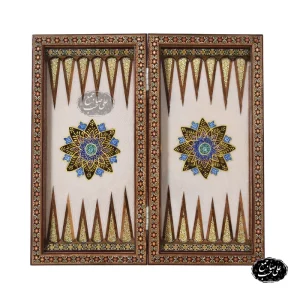 تخته نرد و شطرنج 70سانتی تذهیب حلکاری ختایی لبگرد خاتمکاری پر کار با پوشش پلی استر