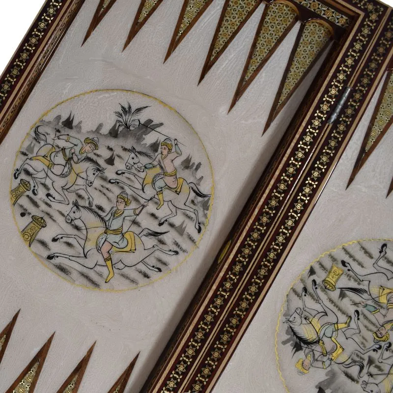 ترکیب خاتمکاری ظریف با نگارگری سنتی چوگان به سبک سیاهقلم، هویتی خاص و منحصربهفرد به این تخته نرد بخشیده و آن را به انتخابی ایدهآل برای علاقهمندان هنر اصیل ایرانی تبدیل کرده است.