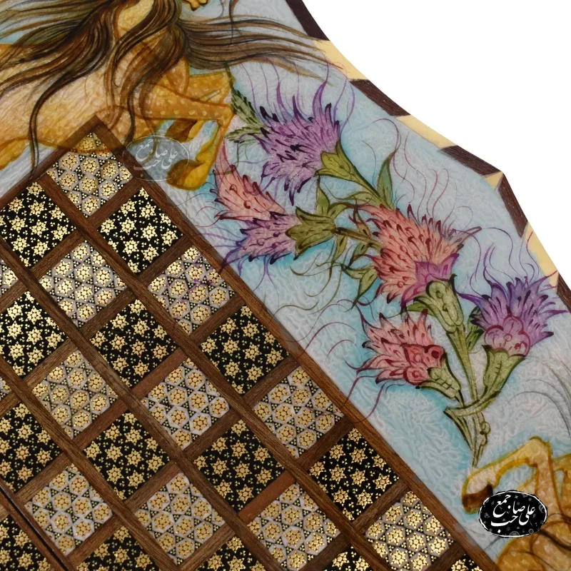 مشخصات محصول تخته نرد و شطرنج دالبر خاتمکاری نقاشی لیلی و مجنون کد 118