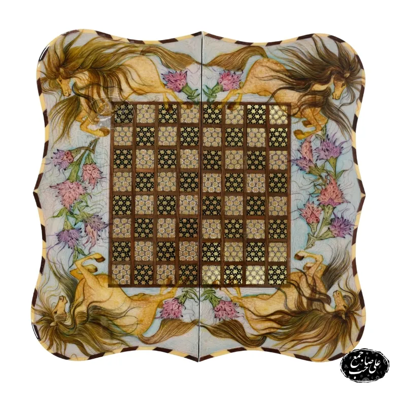 تخته نرد شطرنج دالبر خاتمکاری نقاشی اسب وحشی کد 118