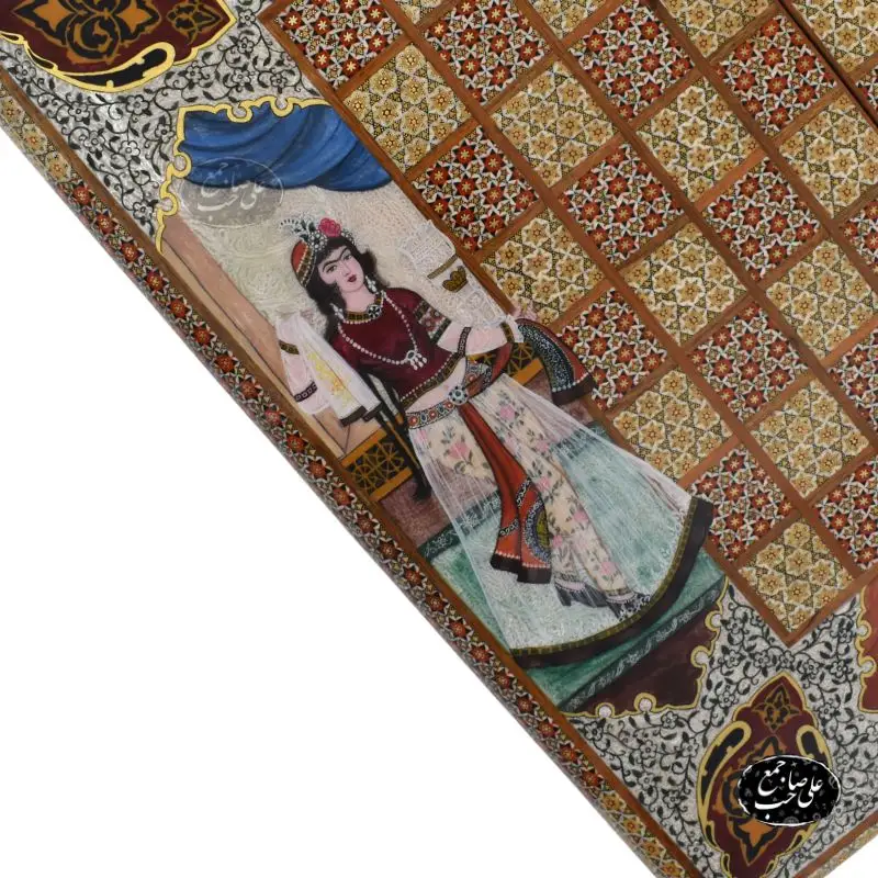 تخته نرد شطرنج لبگرد خاتم 60 سانتی طرح نقاشی قاجار کد 120