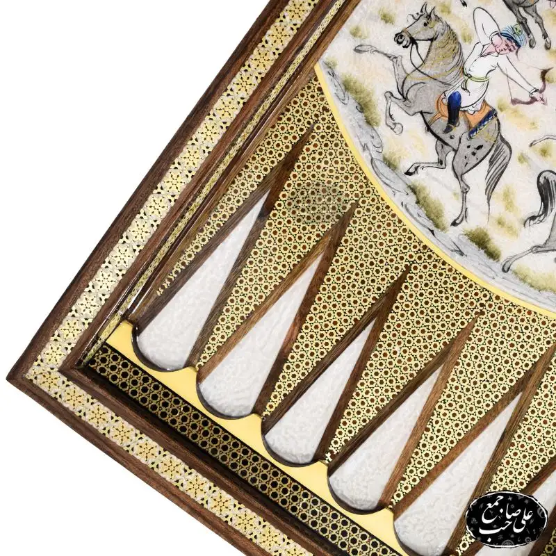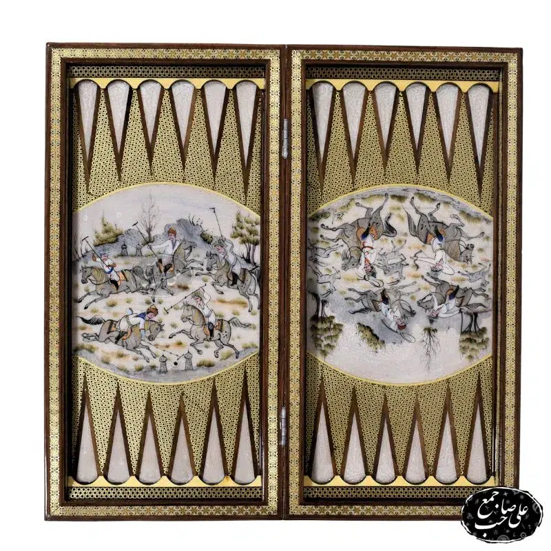 خرید تخته نرد اسب و چوگان با نقوش اصیل مینیاتوری