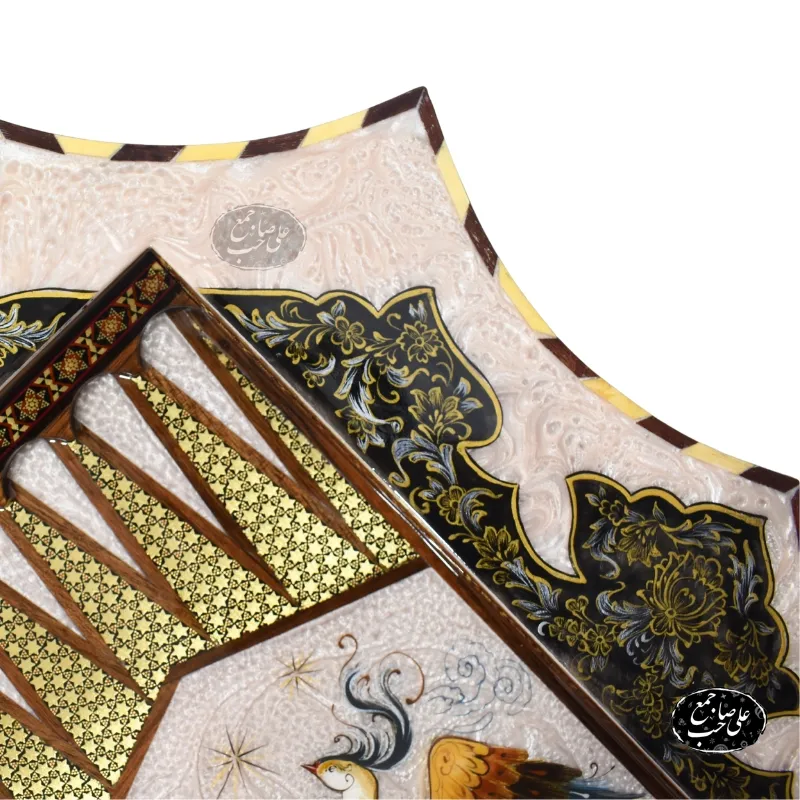 ترکیب خاتمکاری نفیس با نقاشی دستساز طرح سیمرغ