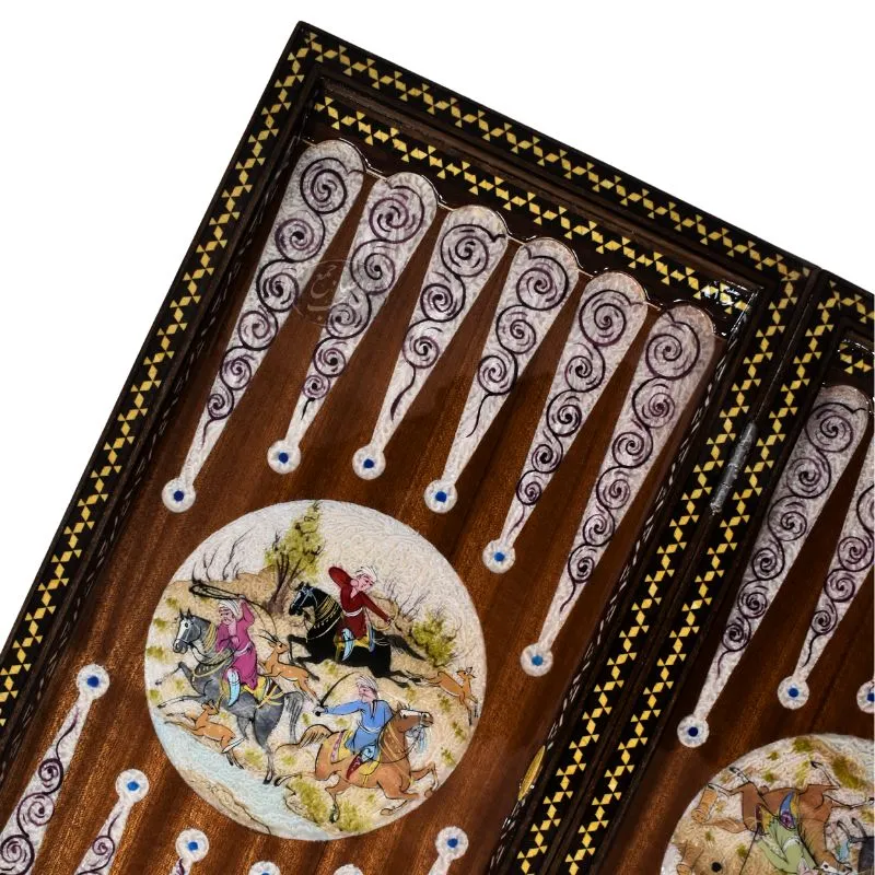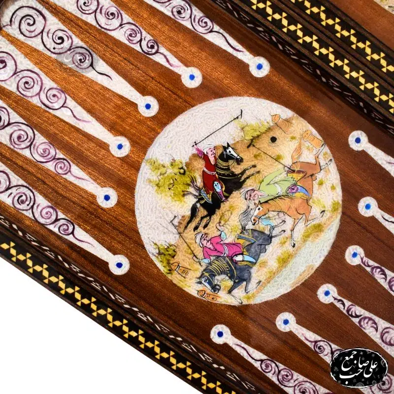 کف تخته نرد مزین به نقاشی اصیل چوگان