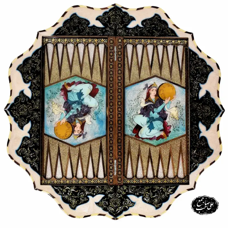 | طرح داخلی | نقاشی دستی طرح خرید تخته نرد خاتم و صدف بزم |