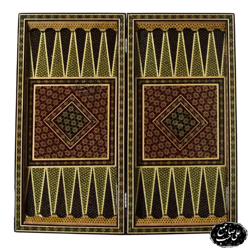 | لوازم جانبی | مهرههای تخته نرد خاتم یا چوبی اعلا، تاس، کاور (مطابق با متعلقات واقعی شما) |