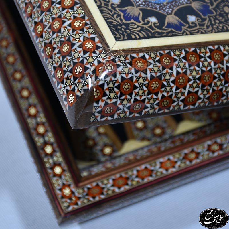 • ساخته شده از چوب راش یا گردو با طرح خاتم اصفهان