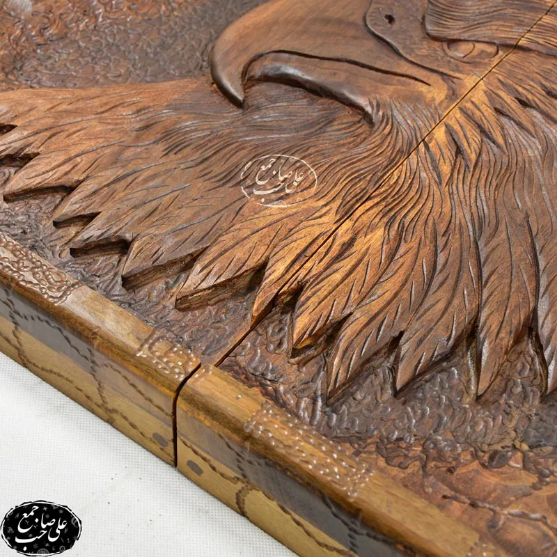 تابلو نرد منبت کاری عقاب چوب ریشه گردو سایز 60*60 cm